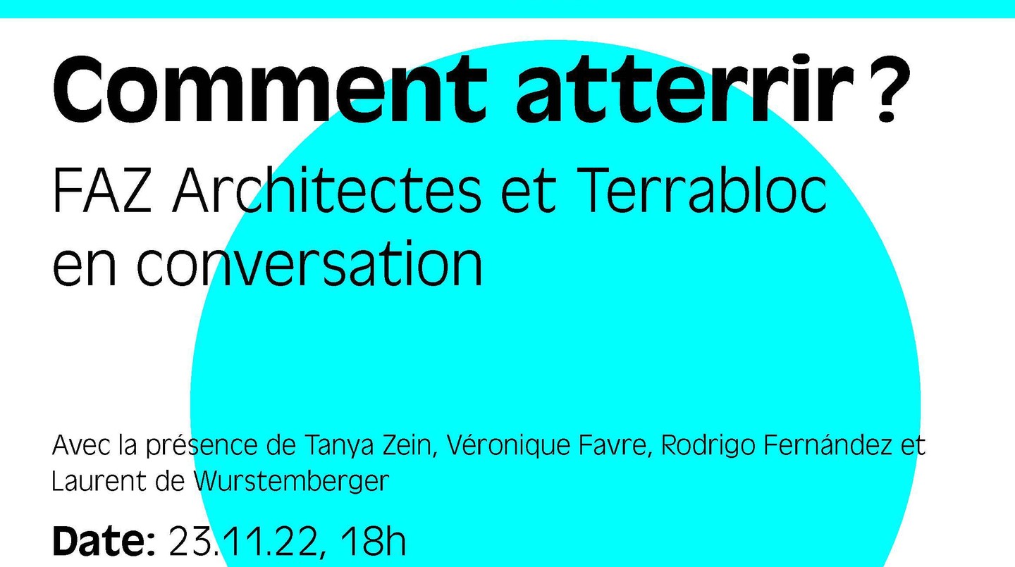 Comment atterrir ? FAZ Architectes & Terrabloc / EPFL Architecture, Fondation Culture du bâti Suisse