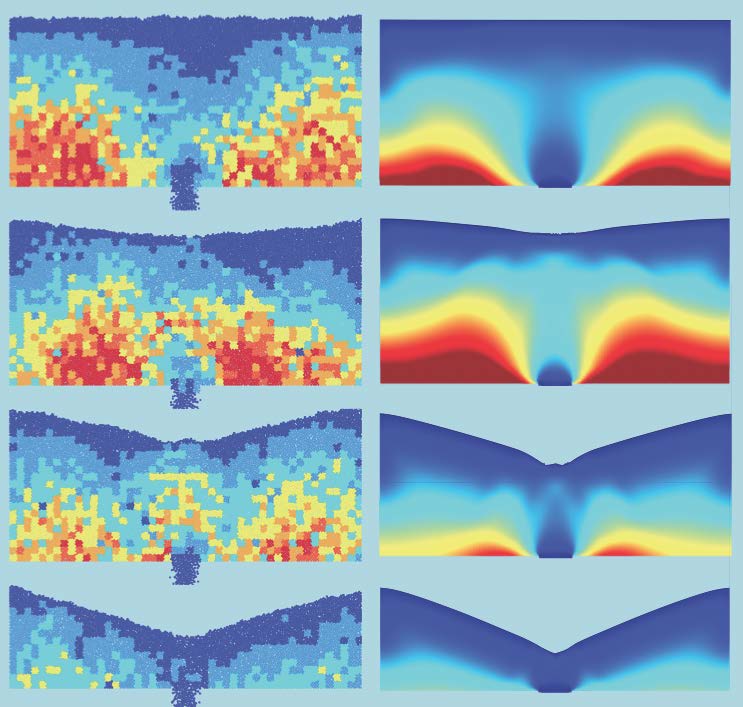 Here we adopt the fluid point of view and discribe granular matter as a continuum media with the so called µ(I) rheology: it is a plastic rheology were the normal and shear stress are proportional (Coulomb friction law).