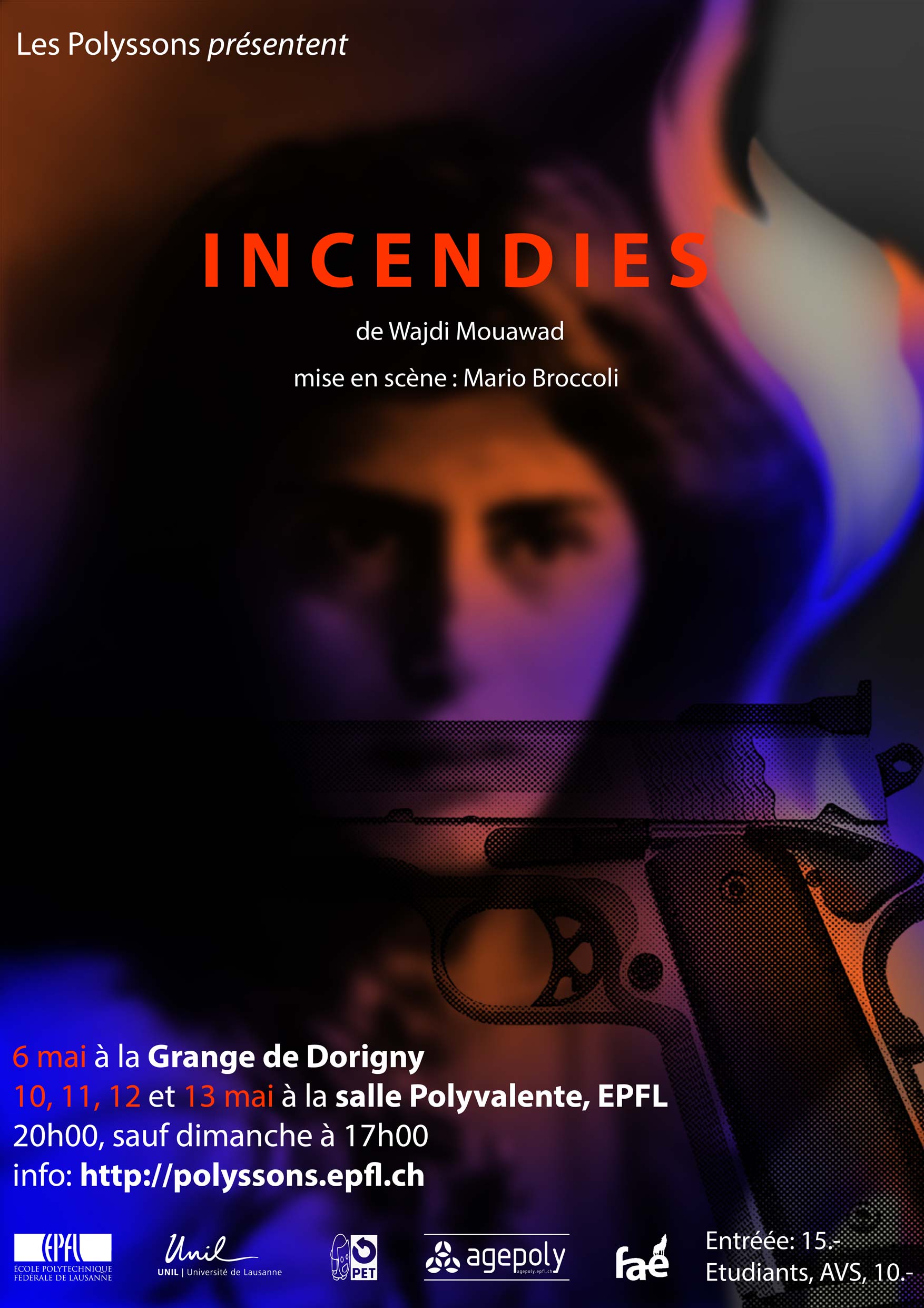 Cette année la troupe des Polyssons vous propose la pièce Incendies de Wajdi Mouawad (deuxième volet du cycle Le Sang des Promesses, il précède Forêts joué par les Polyssons en 2010) dont voici un petit aperçu :