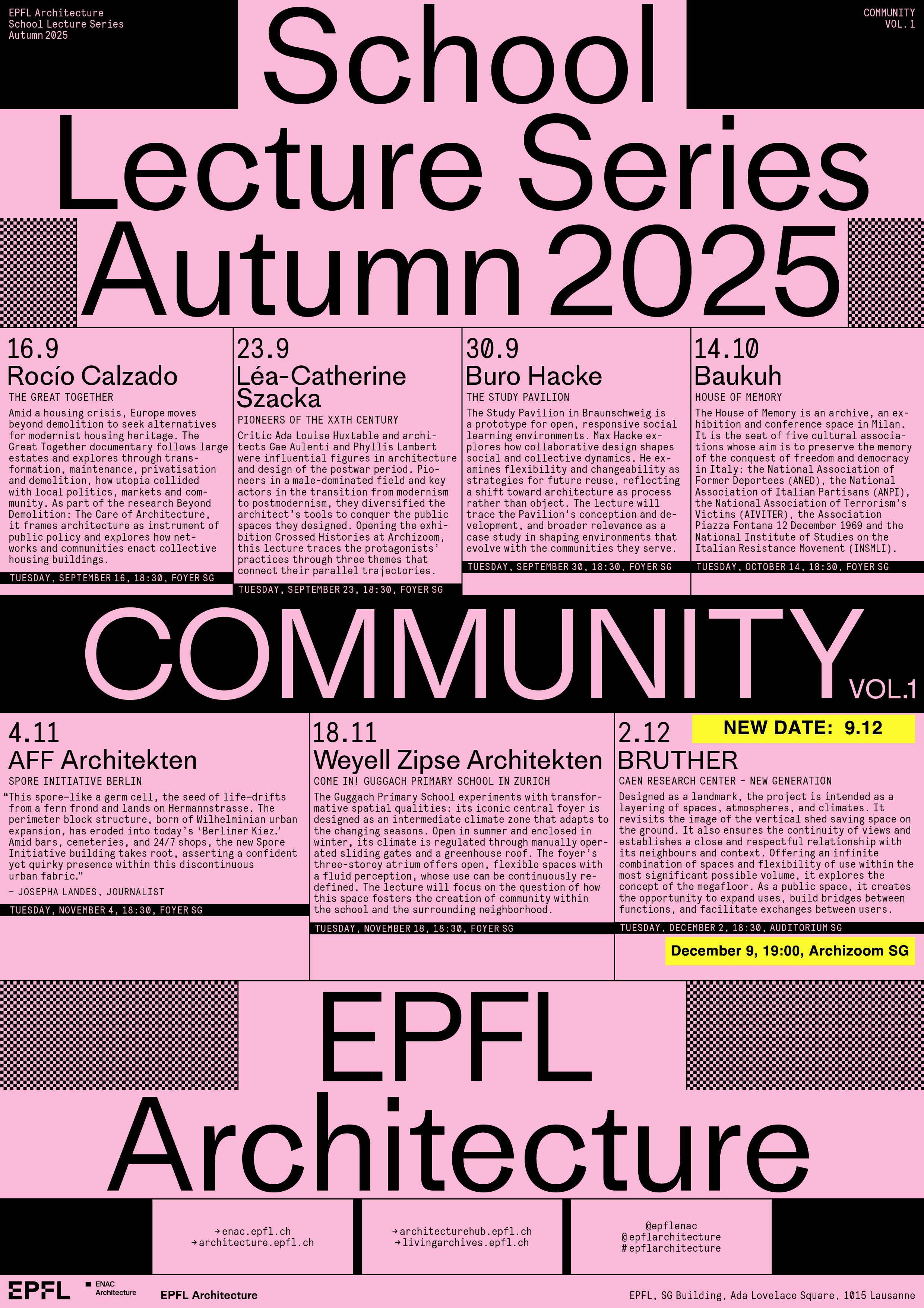 Introducing the third edition of the School Lecture Series, this Autumn 2025, we invite seven practitioners to open a discussion around the topic of Community, through exemplary projects and case studies.